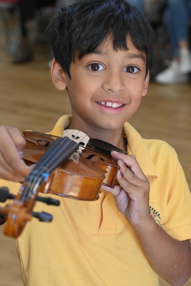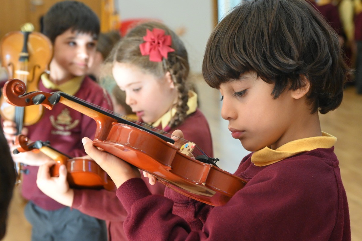 Pupils were then invited to explore and try out a wide range of instruments, including strings, wind, brass, and percussion. With the opportunity to rotate in groups between each teacher, every child was able to get hands-on experience and discover something new – it was a fun and inspiring afternoon.