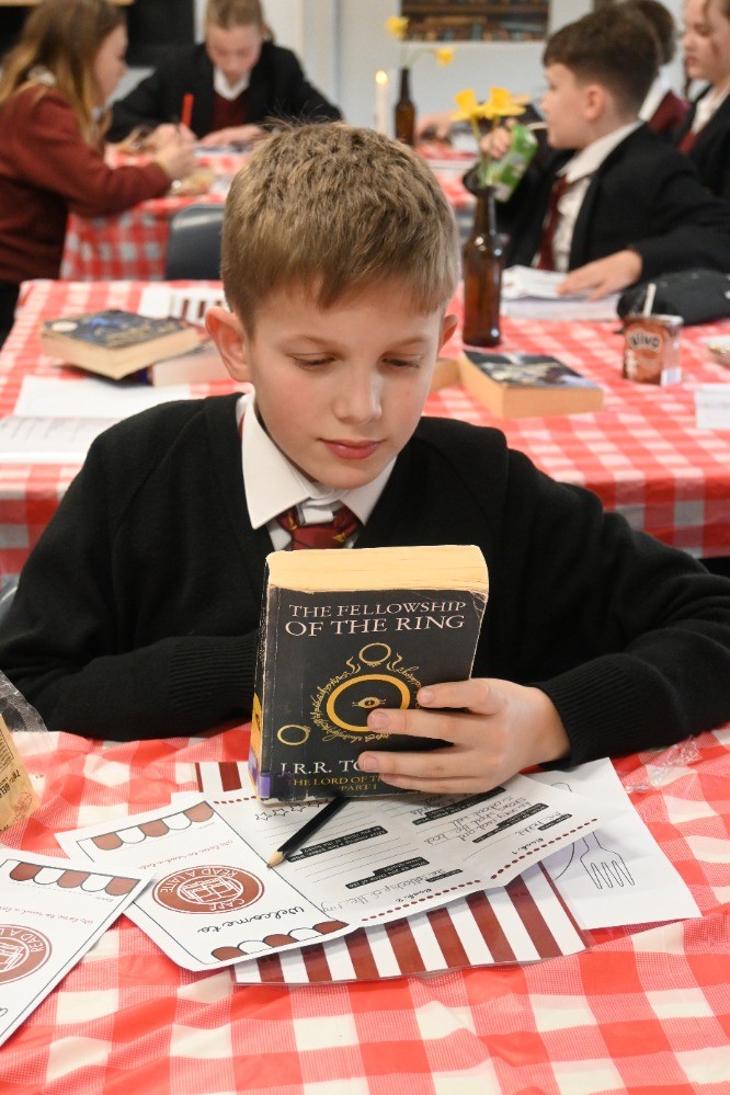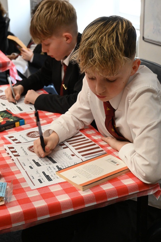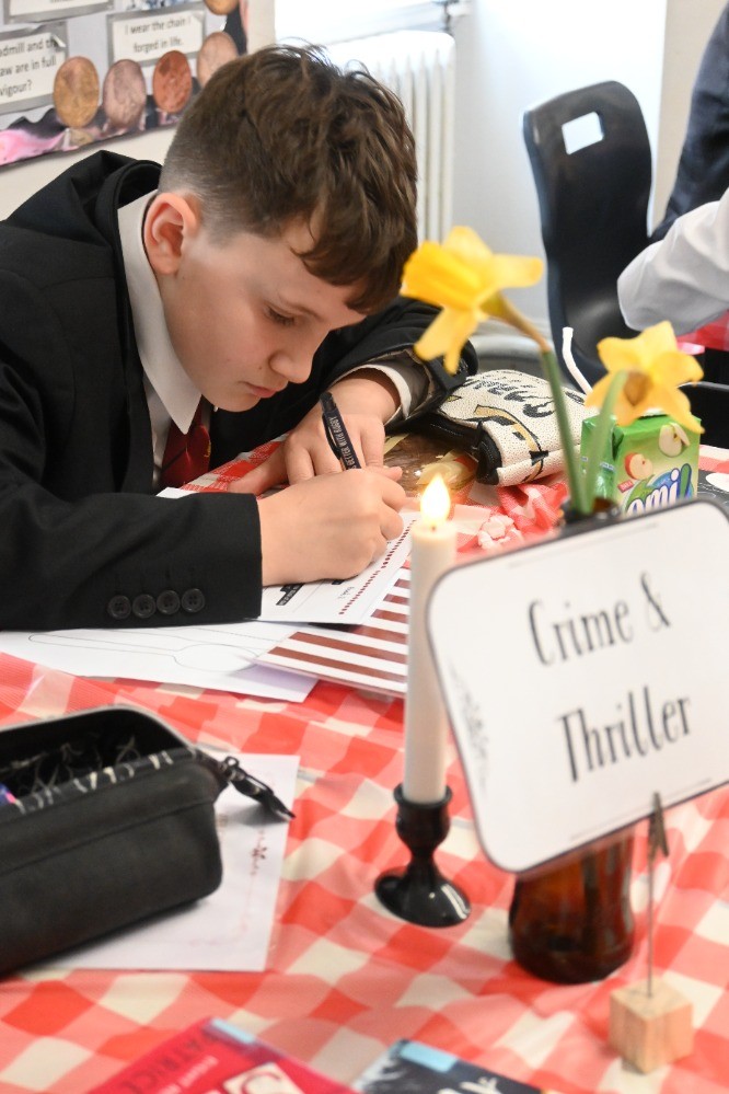 One of our English classrooms was transformed into a charming Parisian café, complete with themed décor and a selection of titles arranged by genre, including crime, thrillers, and historical fiction. Pupils browsed the 'menu' of books, sampled different texts, and reflected on which genres they might enjoy exploring further. To complete the café experience, they also enjoyed a cookie and some chocolate milk, creating a relaxed and enjoyable atmosphere to celebrate reading.