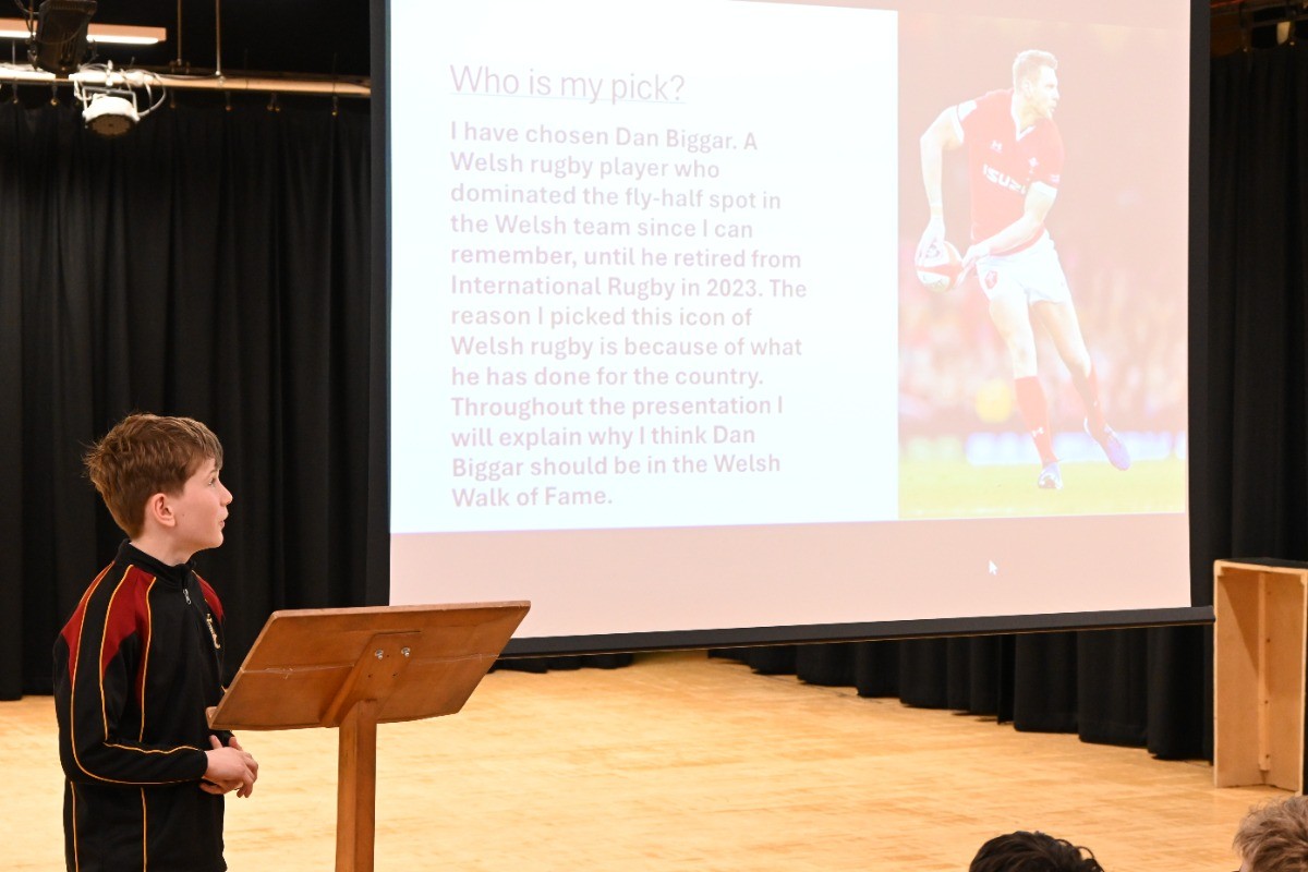 In Seniors, the event began with a reading of Hiraeth by Andrew Challis before pupils took to the stage for poetry readings, comedy sketches and House competitions. The standard of the poetry competition was particularly high, with nine pupils sharing poems on the theme of Welsh Pride. The afternoon also included a Welsh landmarks quiz, a lively Welsh Hall of Fame tribute, and a spirited whole-room singalong of Yma o Hyd before finishing with the Welsh National Anthem, but not before the Chairing of the Bard and announcing Teilo House as the overall winners.