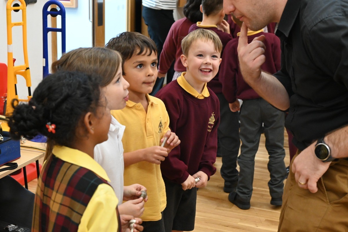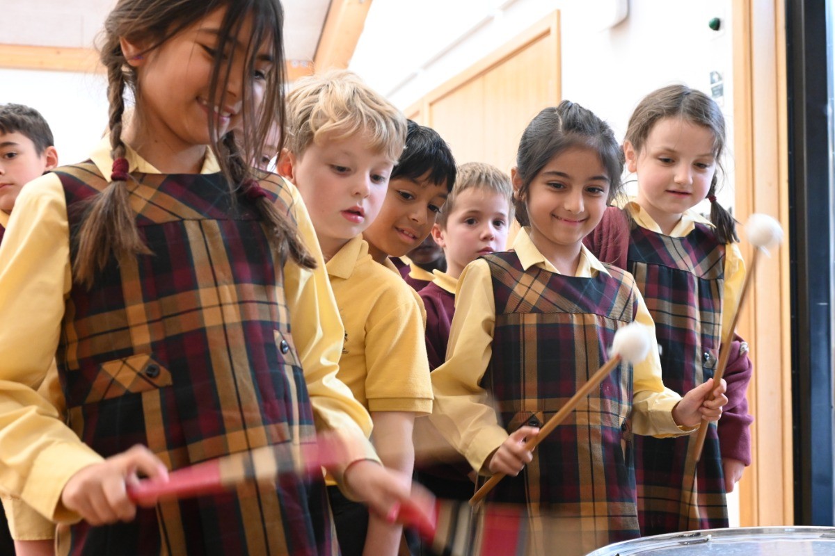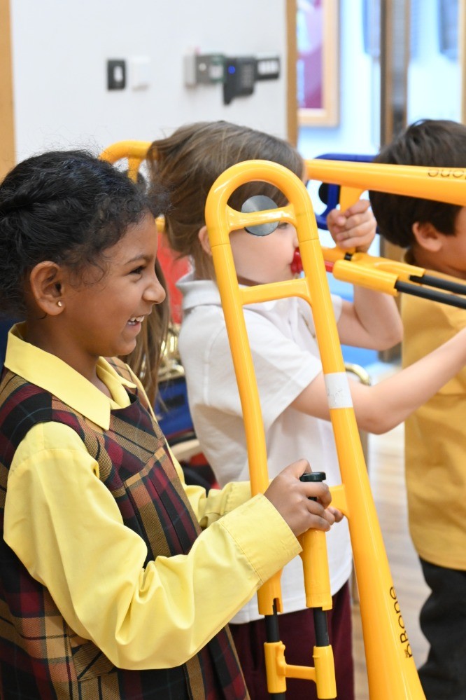 Pupils were then invited to explore and try out a wide range of instruments, including strings, wind, brass, and percussion. With the opportunity to rotate in groups between each teacher, every child was able to get hands-on experience and discover something new – it was a fun and inspiring afternoon.