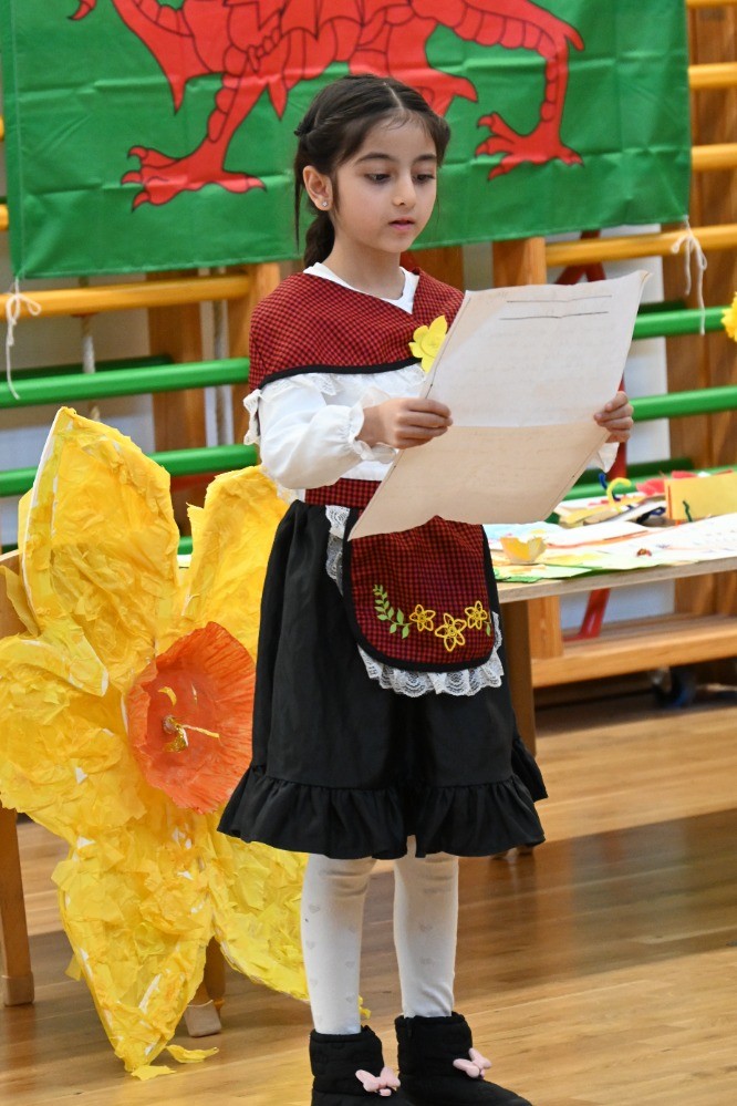 Our Infant Eisteddfod was full of colour and creativity, with beautiful daffodils, dragon collages and photographs of Wales brightening the displays. Pupils in Early Years performed traditional Welsh songs including Un Bys, Dau Bys and Lliwiau’r Enfys, while Year 1 and Year 2 delighted with their musical performances and poetry recitals. Congratulations to all our competition finalists, including our Infant Bard for a wonderful dragon-themed poem.