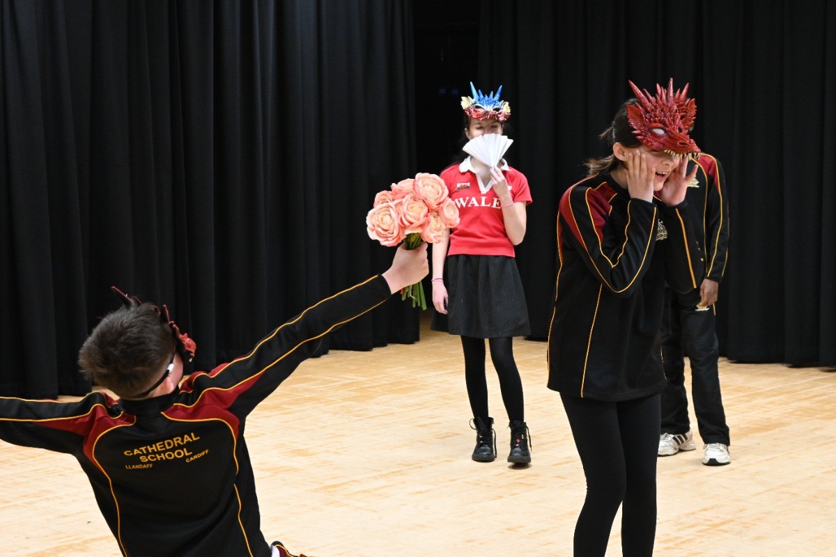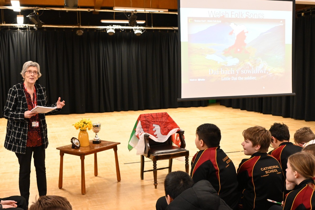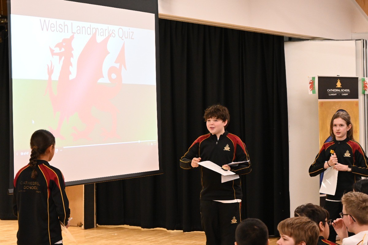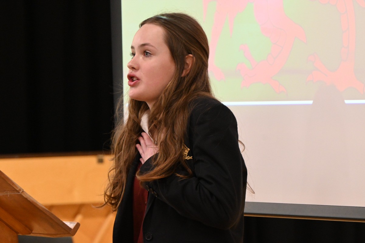 In Seniors, the event began with a reading of Hiraeth by Andrew Challis before pupils took to the stage for poetry readings, comedy sketches and House competitions. The standard of the poetry competition was particularly high, with nine pupils sharing poems on the theme of Welsh Pride. The afternoon also included a Welsh landmarks quiz, a lively Welsh Hall of Fame tribute, and a spirited whole-room singalong of Yma o Hyd before finishing with the Welsh National Anthem, but not before the Chairing of the Bard and announcing Teilo House as the overall winners.