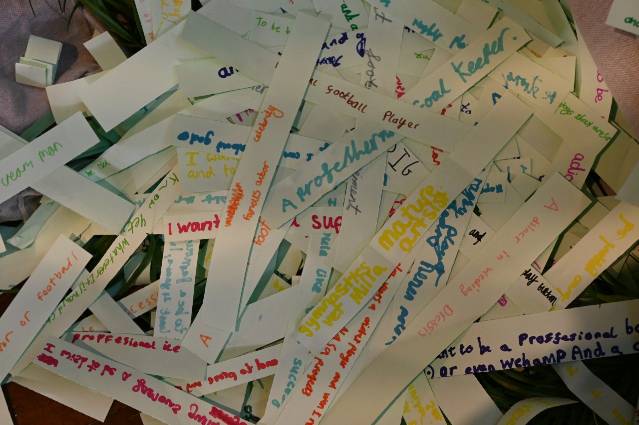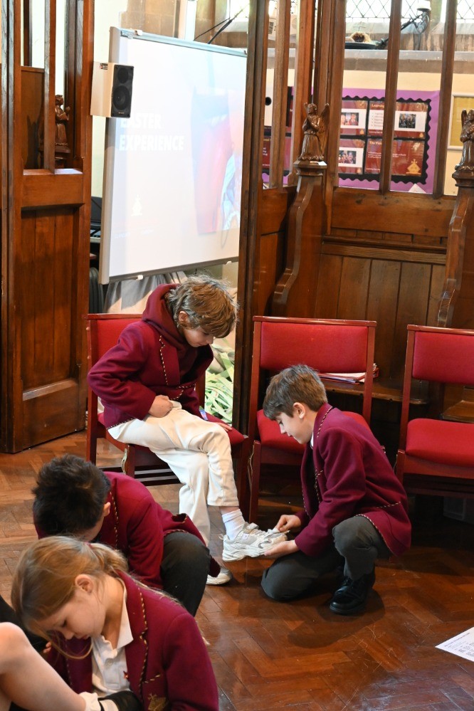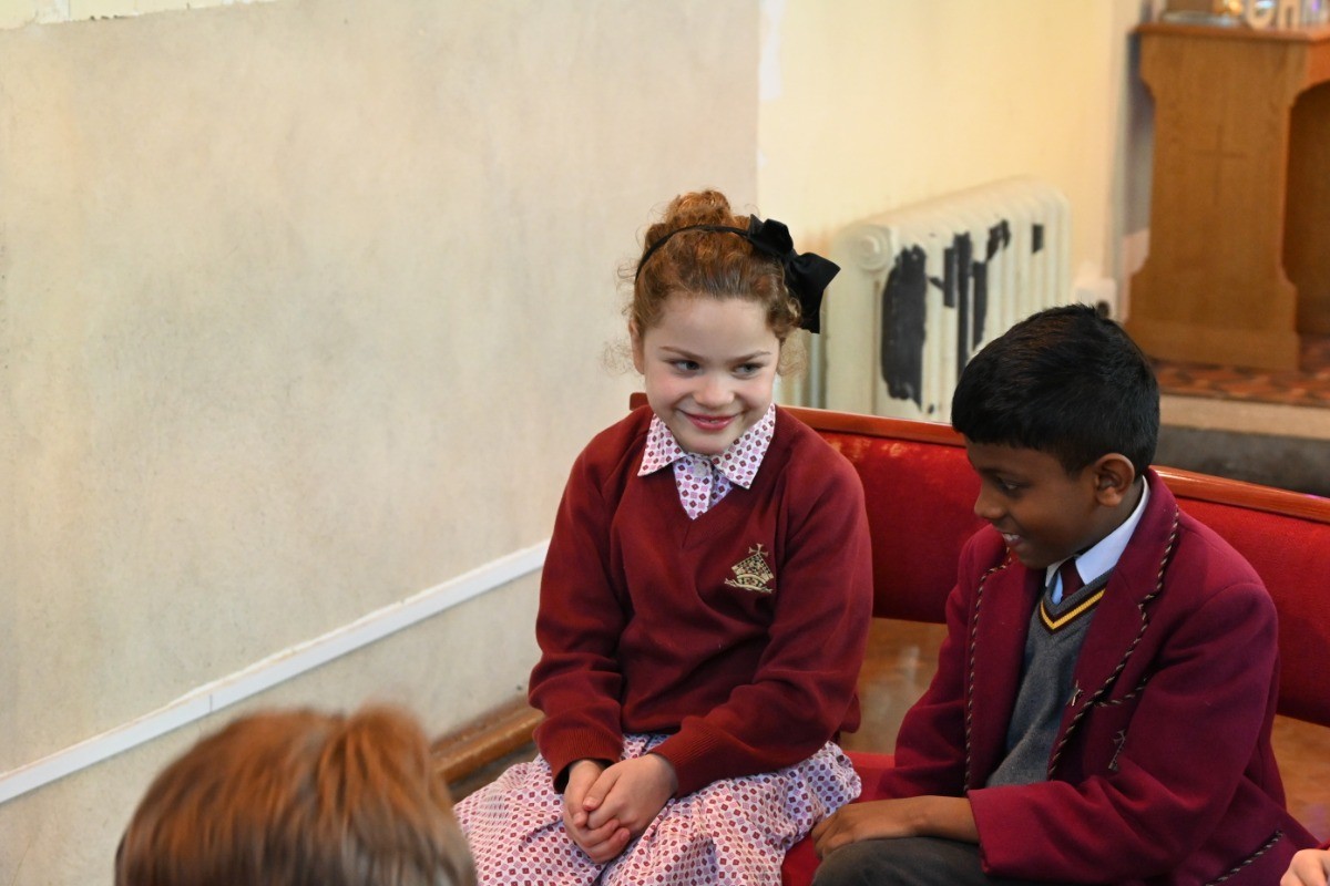 The impact on spiritual development was clear. Pupils were given space for quiet reflection, prayer, and personal response, with many able to articulate their thoughts and feelings in thoughtful, age-appropriate ways. Activities such as washing each other's shoes as an act of service, or shaping ribbon to express more difficult emotions, encouraged pupils to connect the story to their own lives.
